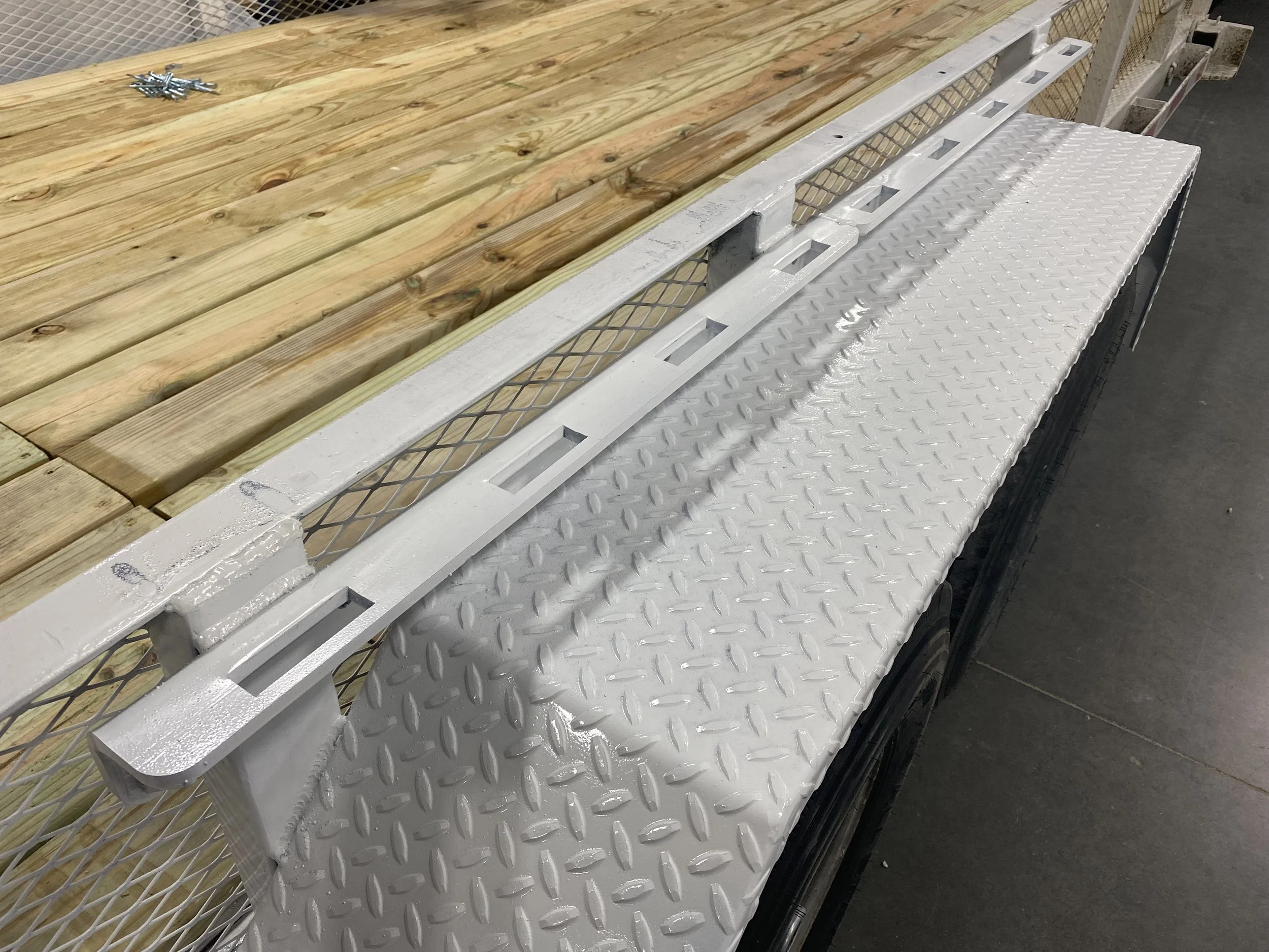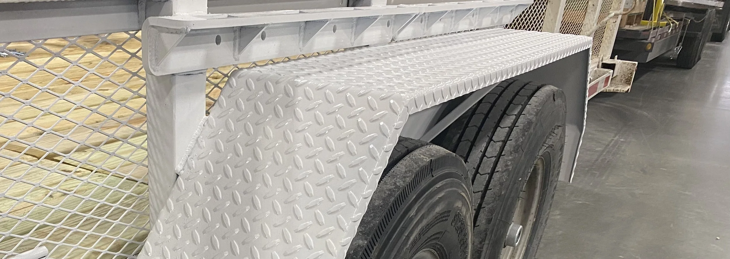 Tired of not having a place to hook your straps around the fender area on dual axle trailers? Here at Hotwood’s, we have designed a 3/8” weld-on rail with strap pockets to hook your straps through.